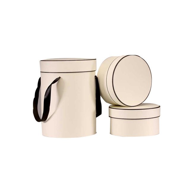Luxurious white paper circular flower box packaging gift box with black handle