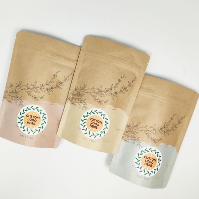 Recyclable zipper brown leather paper bag custom brown leather paper biodegradable bag upright bag