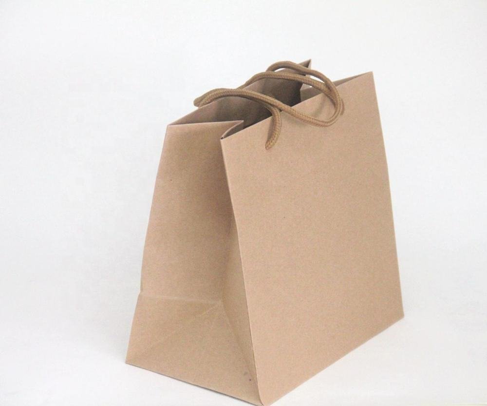 Portable brown waterproof shopping gift and clothing,food packaging bags made of kraft paper, which can be reused.