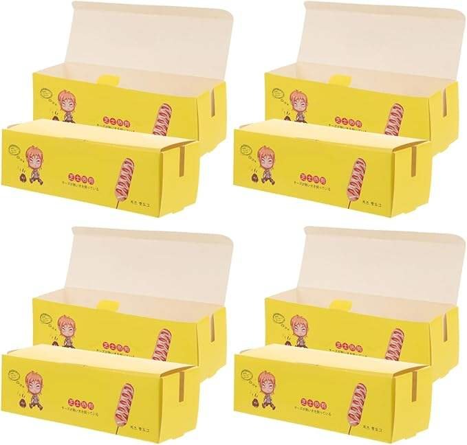 One-time use paper hot dog container, with lid and self-folding cardboard food container, suitable for sausage cheese hot dog sticks and egg rolls